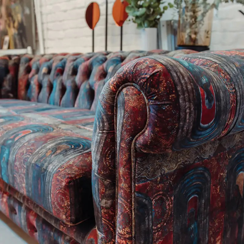 Модель дивана Mandala Inchinaciune обтянута роскошным бархатом, очень мягким на ощупь. Такой материал придаёт изделию элегантный и благородный вид. Диван заметен в любом интерьере. На стыке функциональности и эстетики эта мебель удобна и помогает создать ощущение уникального, личного дома.