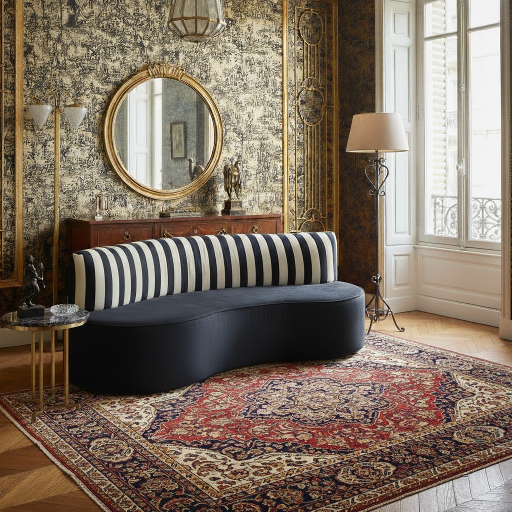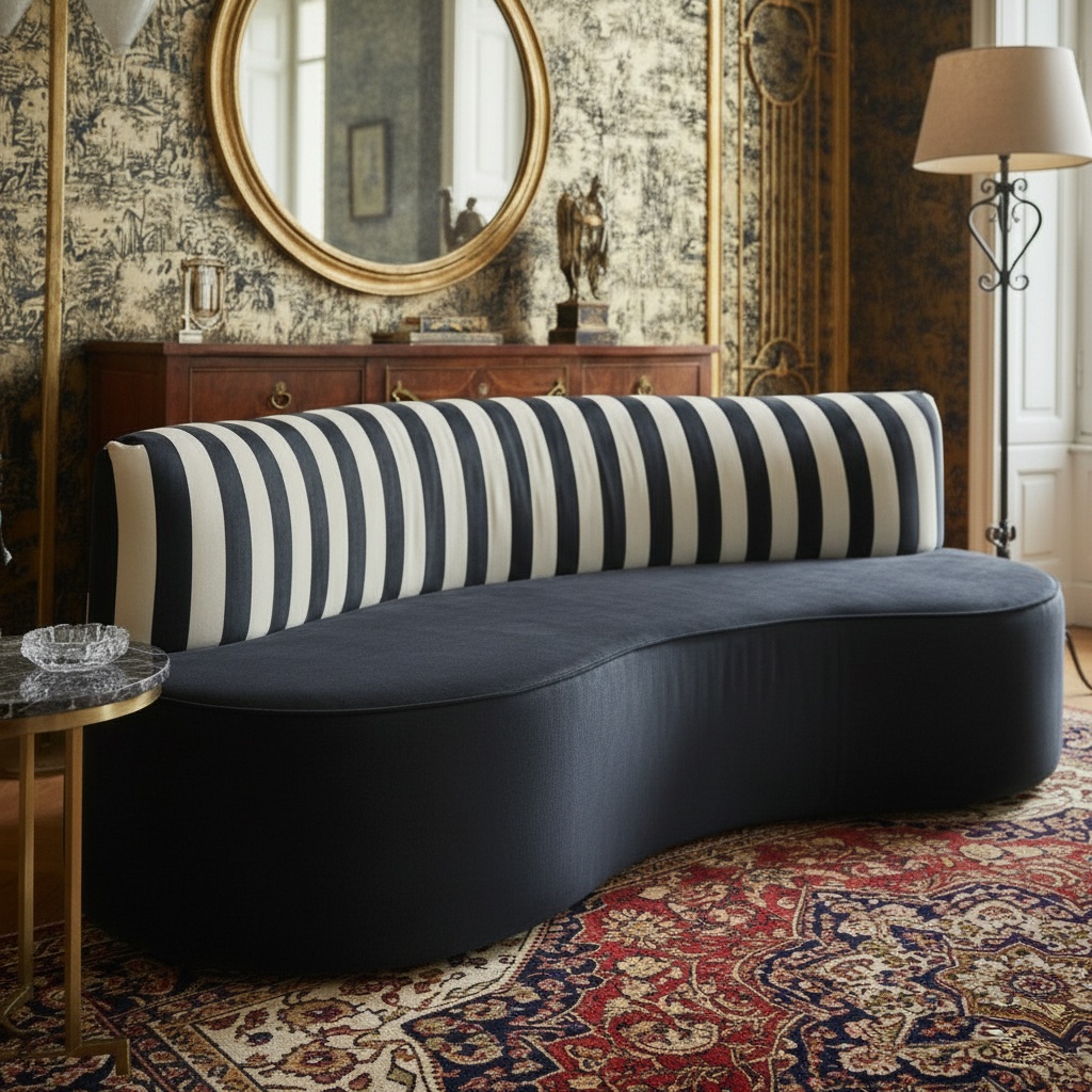 Диван Staccato Grande — это предмет дизайна, который превращает любое помещение в изысканное и запоминающееся пространство. Сглаженные плавные линии и обивка в контрастную чёрно‑белую полоску переосмысливают классику через призму современной утончённости. Вдохновлённый вневременной элегантностью парижских интерьеров, но адаптированный к эклектичному духу House of VLAdiLA, Staccato Grande мгновенно становится визуальным центром комнаты.