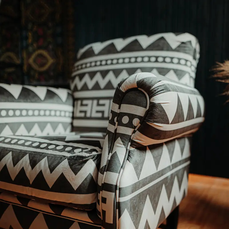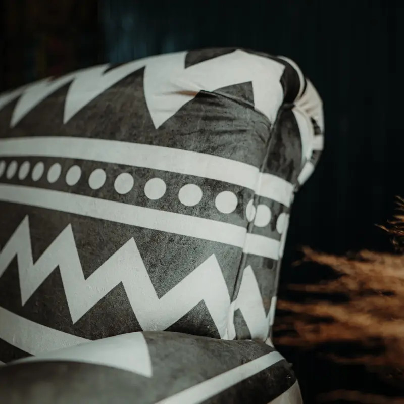 В тонком сочетании роскоши и тайны модель кресла Elbrus Nebo приглашает вас в завораживающий мир, где монохромный дизайн плавно переплетается с племенными элементами, создавая по-настоящему уникальное мебельное изделие. Дизайн придаёт креслу выраженную индивидуальность. На спинке и по бокам сложные контуры, вдохновлённые древним искусством, придают особое очарование — словно захватывающая история вплетена в бархатную обивку. Изогнутые линии и племенные знаки подчёркивают символизм и связь с природой, напоминая о древних традициях и мистике племён.