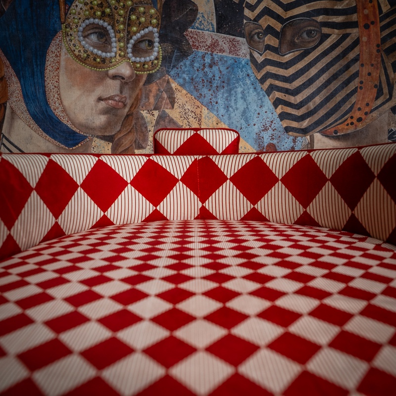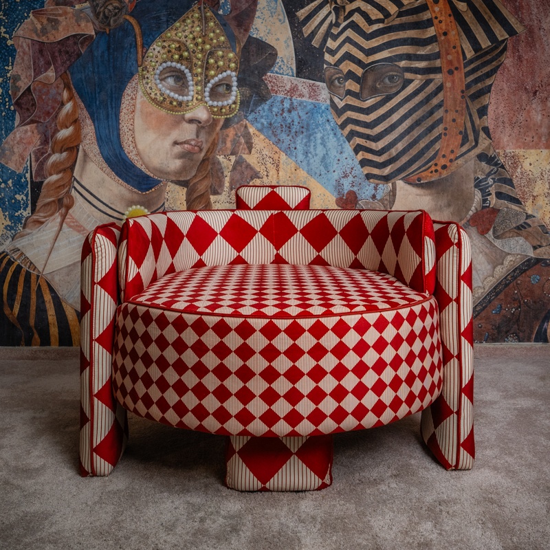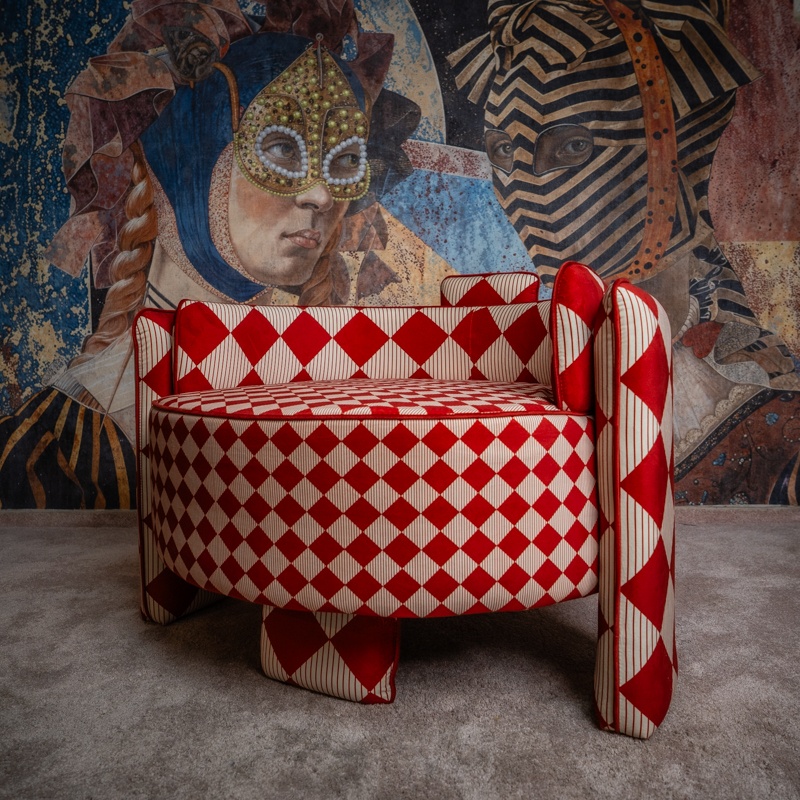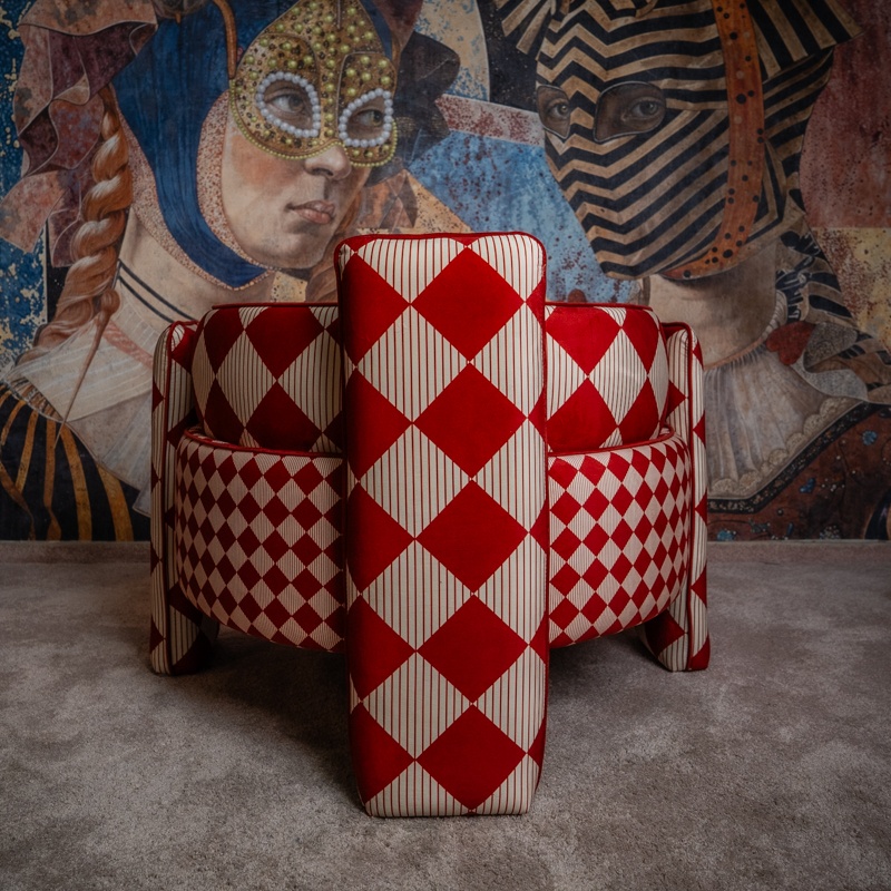 Кресло Picasso Hart привлекает внимание смелым и оригинальным дизайном, созданным художниками House of VLAdiLA. Сочетая динамичные геометрические мотивы в насыщенных красных и белых тонах, оно впечатляет. Это та модель, которая станет центром любой комнаты. Округлая форма и закруглённые подлокотники придают современный и игривый вид. Обивка с контрастными узорами уравновешена прочным основанием и симметричными деталями. В результате получается выразительный и изысканный визуальный эффект.