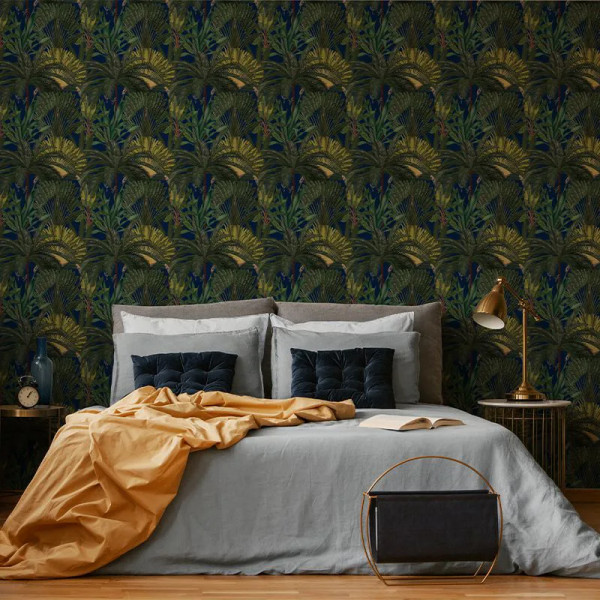Обои Admiral Palms — воплощение экзотического дизайна. С повторяющимися арт-изображениями, расположенными вертикально, композиция стилистических элементов настраивает на мечты. Она переносит вас в оазис бесконечной элегантности и пышной растительности. Обои Admiral Palms покрывают стены мужественным и внушительным узором. Графически они передают энергию и свежесть райского острова прямо в вашей жилой зоне.