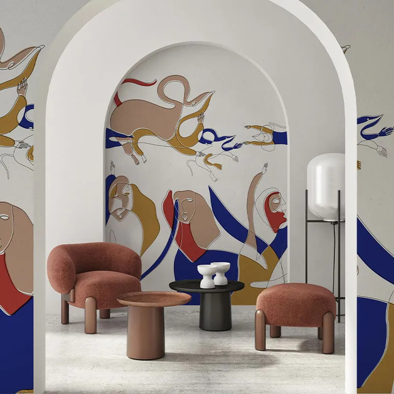 Как и все наши обои, модель Antropomorphic Primary изготовлена на основе Vlies. Это нетканый материал, очень прочный и долговечный. Мы предлагаем три разные текстуры, чтобы вы могли выбрать ощущение, которое привнесёте в дом. Обои Smooth матовые, гладкие и приятные на ощупь. Canvas имеет текстуру, создающую эффект увеличенного полотна. И, наконец, Linen — благородный материал, который окутывает стены текстурой, напоминающей плотный лен.