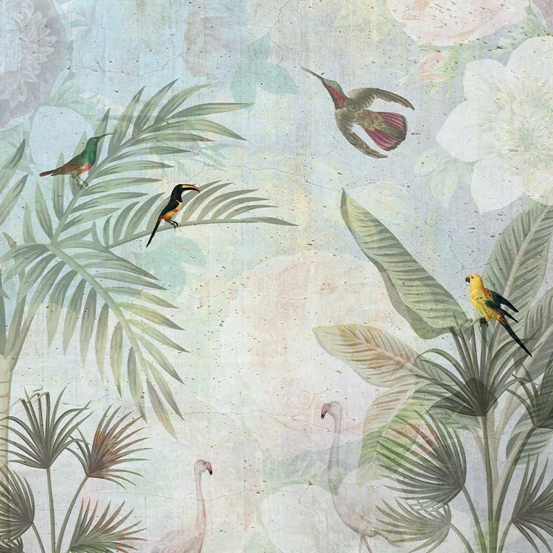 Коллекция обоев Tropical Vibe адресована всем любителям природы. Но в особенности — тем, кто любит экзотику. С её помощью вы отрываетесь от привычного и получаете фрагмент далёкого края. Обои нашей мастерской олицетворяют место, всегда залитое солнцем, ласкаемое морским бризом и населённое занимательными животными.