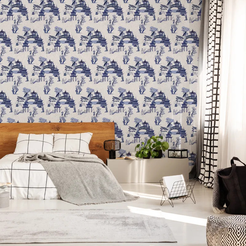 Обои Chinese toile (blue) отражают стиль, популярный в викторианскую эпоху. Это ориенталистский дизайн с пасторальными сценами из жизни Дальнего Востока. Он возвращает вас в застывшую вечную роскошь. Древний мир заставляет вас парить над обычаями, сохранившимися до наших дней. Акварельный фон в оттенках белого и сапфирового синего придаст вашему дому ощущение совершенства и спокойной уравновешенности. Так вы сможете наслаждаться мелкими радостями жизни в эффектном интерьере, полном благородства и изящества. Этот пейзаж создаёт царственную атмосферу и словно переносит вас в прозрачную плёнку истории рядом с величественным прошлым восточно-азиатской культуры. Какие чувства пробуждает в вас этот пейзаж? Что вы ощущаете, встречаясь с эпохой, которая, кажется, никогда не угасает? Доверьтесь эстетическому мастерству и уделите внимание необычным деталям в дизайне вашего дома.