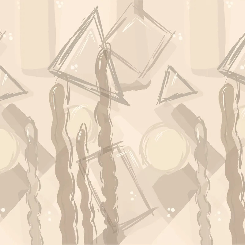 Артворк Dessin (nude) создан в простой манере, напоминающей детство. Он лёгкий и игривый на нежном пастельном фоне. Художники VLAdiLA нанесли на бумагу слегка стилизованные геометрические знаки, словно выполненные рукой ребёнка. Благодаря этому артворк получает незавершённые и свободные контуры. В комнате он создаёт расслабленную, со вкусом и радостную атмосферу.