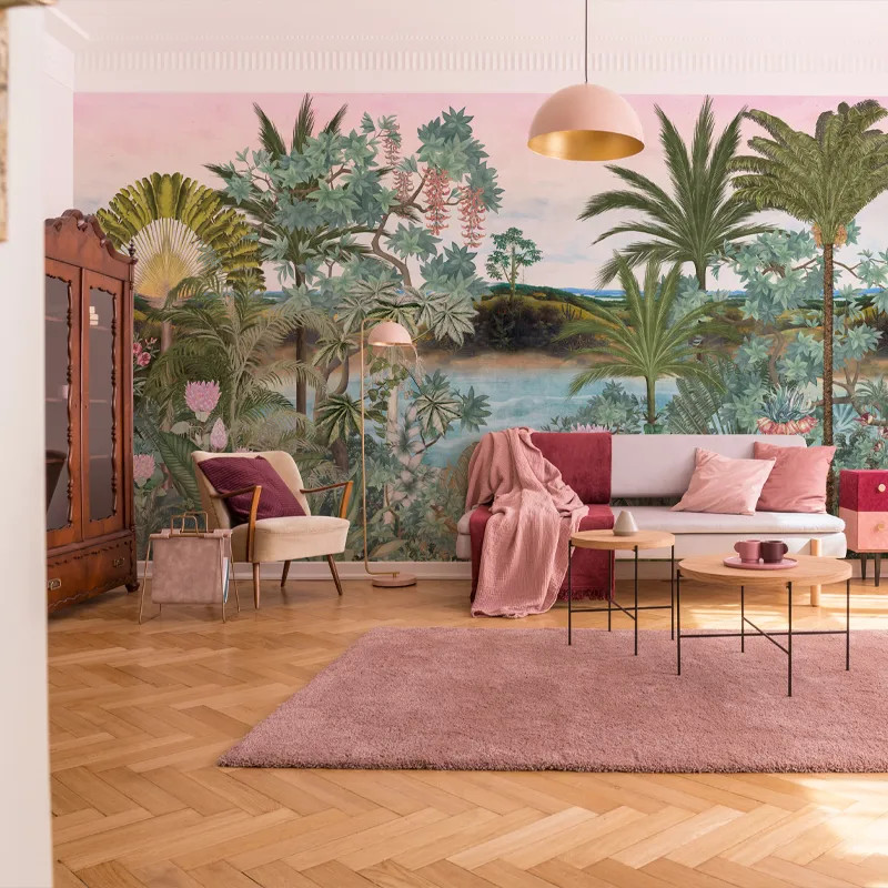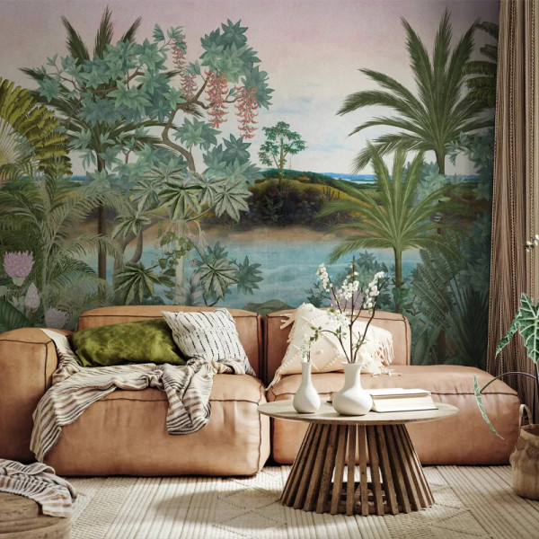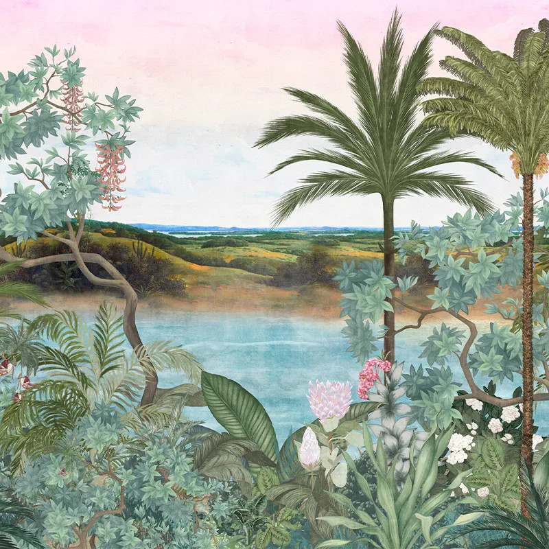 Смотря на эту природную оазис, вы чувствуете тропические ароматы. Они переносят вас в самое сердце острова. Dunia (garden) оформлена рамой из массива дерева с винтажными орнаментами. Она напоминает настенную роспись во дворцовом интерьере. Дизайн обоев Dunia (garden) изображает мир освобождённой природы — место, где гармония и изобилие — повседневность. Остров населён нежными созданиями, которые сохраняют хрупкий баланс экосистемы. Нежная палитра и реалистичные формы превращают эти обои в панорамную картину. Они становятся не просто декором. Обои превращаются в центральный акцент всего интерьера.