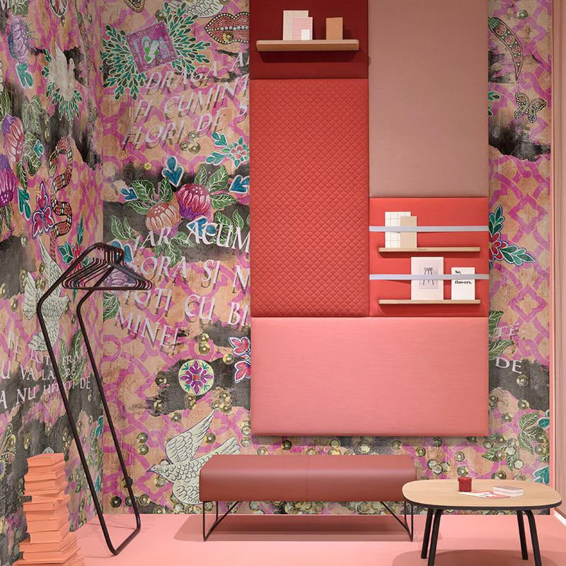 Так, наполненные красотой, мы вернулись домой полные вдохновения и готовы творить. Мы взяли элементы румынской речи, одежды и обычаев и переосмыслили их в современной смелой форме. Через наложение текстур и узоров. С неожиданными неоновыми и граффити-акцентами. Из любви и уважения к природе все наши обои изготовлены из натуральных, экологичных и биоразлагаемых материалов. Поэтому в производстве мы используем основу Vlies — нетканый материал, очень прочный и лёгкий в монтаже.