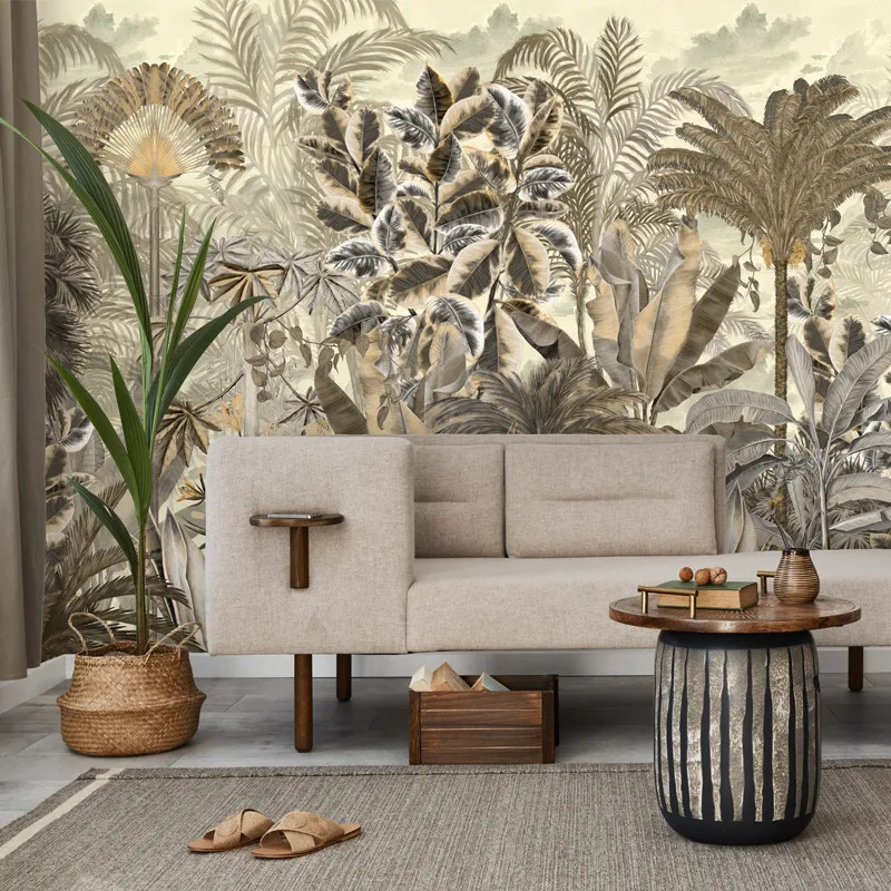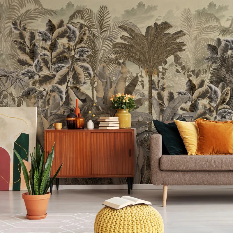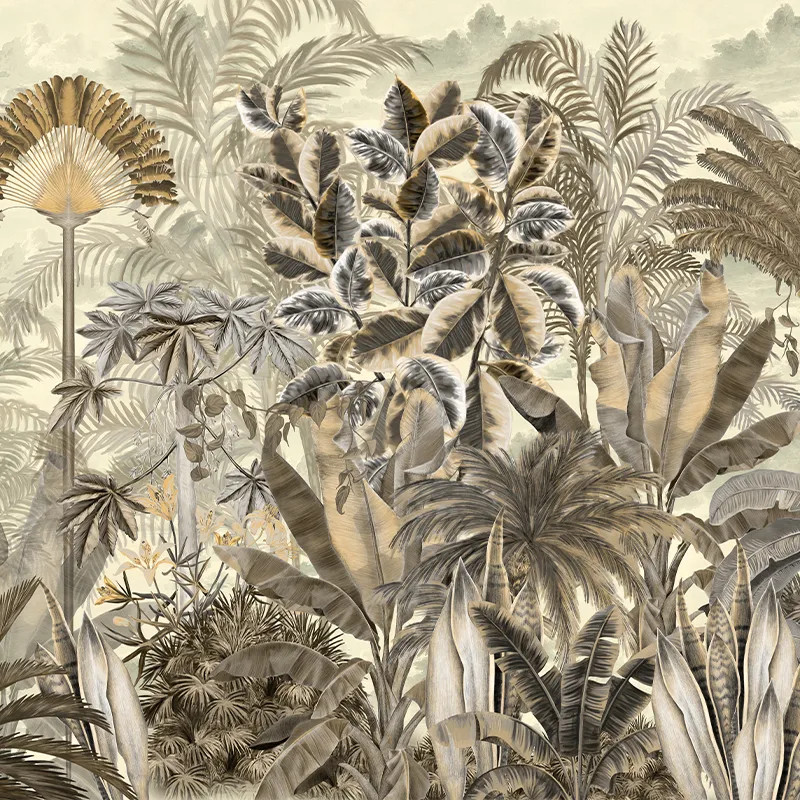Дизайн обоев Gardenaria (sepia) передаёт суть коллекции Más A Tierra: дикость, экзотика, свежая и насыщенная зелень — безграничная красота. На спокойном фоне с пушистыми облаками, создающими фактуру и локальный реализм, талантливые дизайнеры VLAdiLA расположили множество экзотических растений, впечатляющих по цвету, форме и размеру. Дизайн обоев Gardenaria (sepia) переносит вас в сердце роскошных джунглей. Здесь захватывающие листья приглашают к медитации и самоанализу. Как модная витрина, растения ждут, чтобы их открыли и ими восхитились. Marantha, пальмы, Ficus Tineke, сансевиерия и банановые деревья — каждое приносит на стену свежесть и гибкость природы, ещё не тронутой цивилизацией. Оттенки зелёного, пёстрые листья, свет и тень — всё придаёт подлинность. Обои способны превратить любое помещение в визуальную утопию.