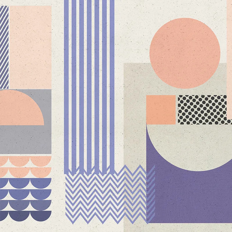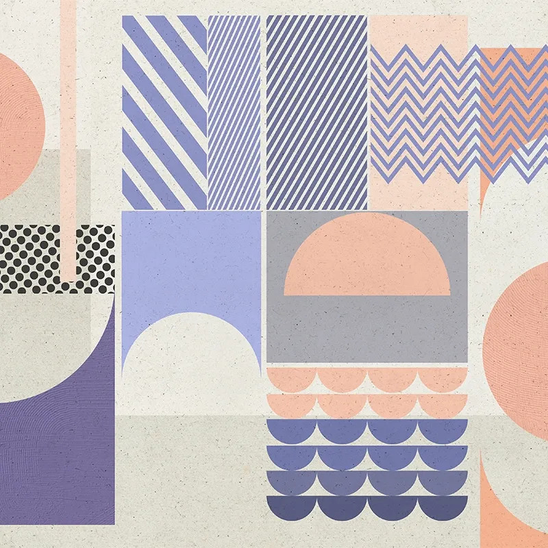 Дизайн обоев Géométrie окутывает стены мягкими и летними узорами. Они подойдут тем, кто любит лето, солнце и море. Дизайнеры VLAdiLA создавали эти обои, вспоминая летние каникулы, детство и подростковый возраст. Artwork показывает симметрично расположенные геометрические фигуры. Это создает структурный визуальный эффект и гармоничную атмосферу. Палитра сочетает пастельный бежевый фон с яркими свежими элементами синего и оранжевого. Контраст напоминает пляж: звёздное небо над горячим песком или прохладное море под солнечными лучами.