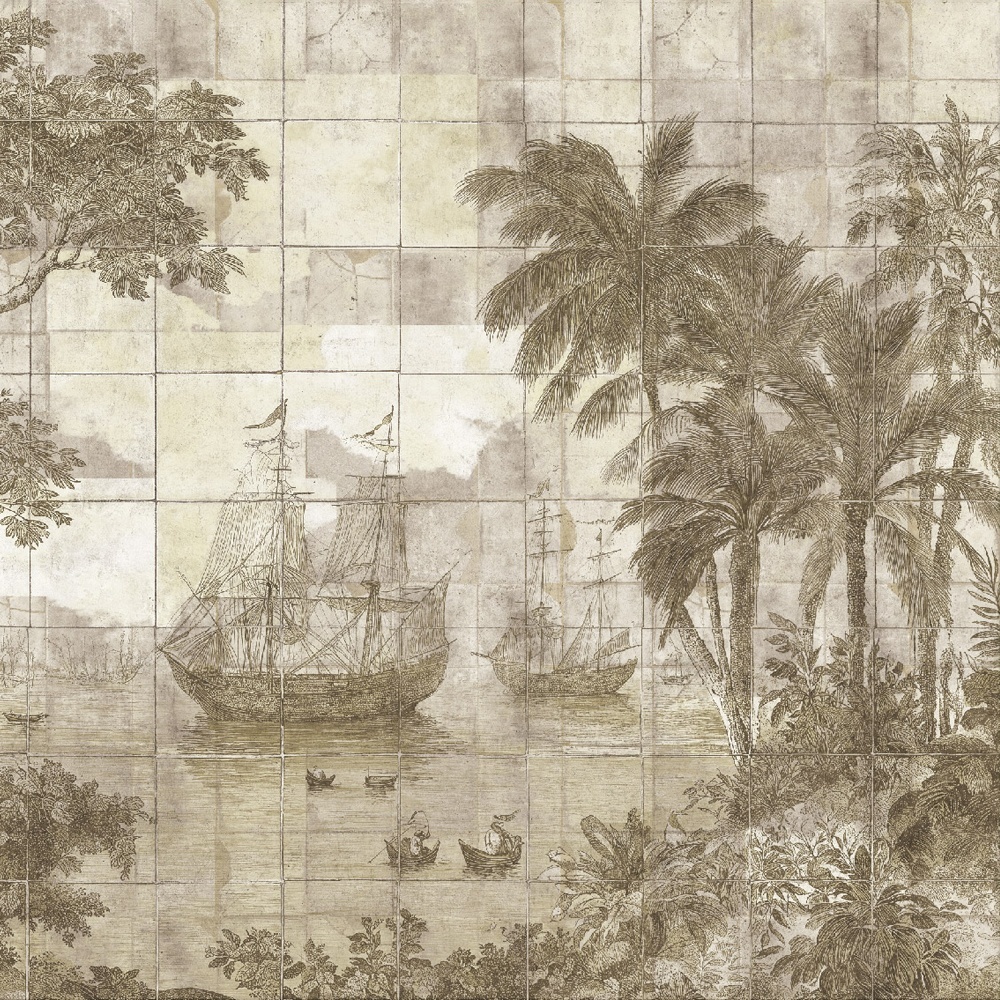 Golden Harbor Cream — морской мурал, полный величия. Он навевает образы залитых солнцем портов и дворцовых берегов. Нарисованный в тёплых терракотовых тонах с мерцающими золотистыми оттенками, этот artwork передаёт романтику путешествий, исследований и вневременных горизонтов.