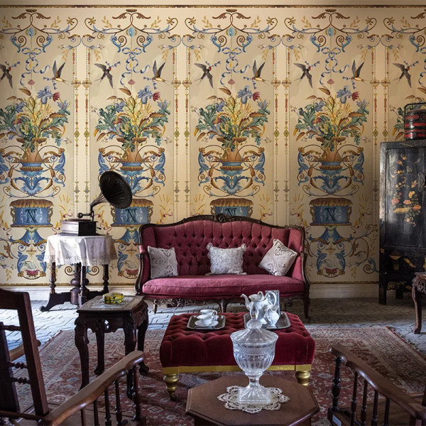Дизайн обоев Golden Thread (Day) рассказывает о дворцовом быте и внутреннем богатстве, которое рождается из душевных ценностей. Изысканность и пластичность рисунка говорят о мастерстве красивой жизни. О жизни, прожитой с честью, божественной грацией и поэзией в сердце.
