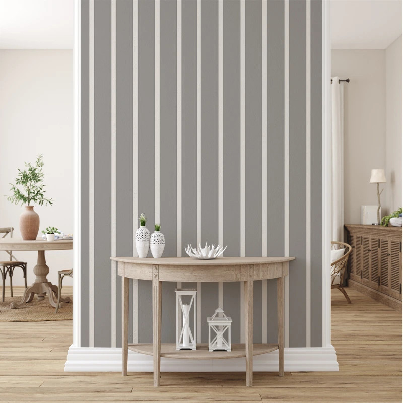 Как и все наши обои, модель Gray and White Stripes выпускается на основе Vlies. Это нетканый материал, очень прочный и долговечный. Мы предлагаем три разные фактуры, чтобы вы могли выбрать ощущение, которое принесёте в дом. Фактура Smooth — матовая, гладкая и приятная на ощупь. Canvas придаёт текстуру, создавая эффект огромного полотна. Linen — благородный материал, который оживляет стены фактурой, напоминающей богатый лён.