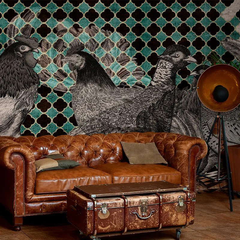 Обои In batatura (iarba)Â исследуют игру полярностейatilor, мифологию si символику фундаментальных элементов в мировой культуре universala, которые датируются ещё с эпохи галлов. Причина вечного восхищения, которое искусство испытывало по отношению к символу птицы заключается в её принадлежности и к земному, тёмному плану, а также и к безграничному небесному уровню , высшего порядка. Более того, чем только, птицы, в особенности петух, всегда рассматривались через призму алхимии. Им приписывали способность к метаморфозе, к возрождению и к защите, петух был первым вестником. Выполненные в народном стиле румынского искусства, с элементами традиционного орнамента и узорами, «In batatura» выглядит величественно si загадочно. В нём слышится мистическое начало, скрытое в ярком оперении. Петух и курица, солнце и луна, Инь и Ян. Всё это говорит об одном и том же вечном танце. «In batatura» воспевает этот танец через тёплые, интимные и выразительные штрихи.