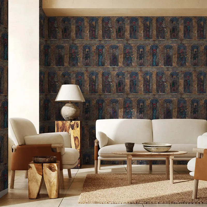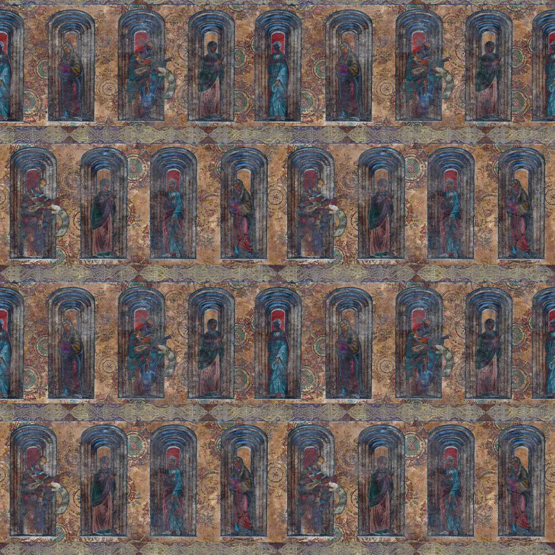 Модель Обои Inchinaciune (chihlimbar) переносит неконформистский в современный интерьерный дизайн религиозное религиозное, которое лежит в основе нашего народа. Часть {из} коллекции Poema Romana, манифест, посвящённый традиции и культурному наследию, Обои позволяют проявиться одному из источников вдохновения для этого, зона церквей и икон высокого ранга из Romania. Мы остановились, таким образом, в краях Bucovina, Campulung Moldovenesc и Gura Humorului, чтобы совершить погружение в мир картин встречающихся в монастырях региона. Мы любовались величественными фресками, написанными Nicolae Grigorescu в Manastirea Agapia. Обои передают библейские, естественные и одушевлённые фигуры на тысячелетнем фоне, обогащённом символами и мотивами из традиционного мистического наследия народа румын. Орнаментация тщательно воспроизведена и напоминает о характерных архитектурных деталях: нишах, поясах штукатурки и или обрамлениях, где сочетаются барочные приёмы с местными мотивами.