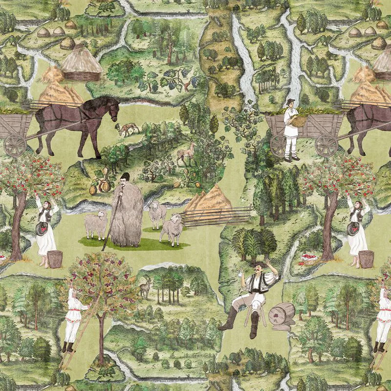 Дизайн каждого обоев отражает правду прошлого, настоящего и будущего. Это погружение внутрь себя, чтобы поразмыслить об идентичности. Что делает тебя румыном? Какие истории о юношах и девушках, собранных в хороводы, рождаются в твоей душе? Какие воспоминания всплывают, когда ты смотришь на истории, запечатлённые в картинках? Запах резкой зимы у печи, на фоне — колядующие. Возможно, день в поляне, когда ноги касаются ещё сырой травы, а солнце их ласкает. Лето на бабушкиной веранде, скручивание шерсти на веретене и напевы старых народных песен. Может быть, вкус спелого винограда, лопающегося на губах. Или осенний сусло, льющийся в кубки на щедром празднике.