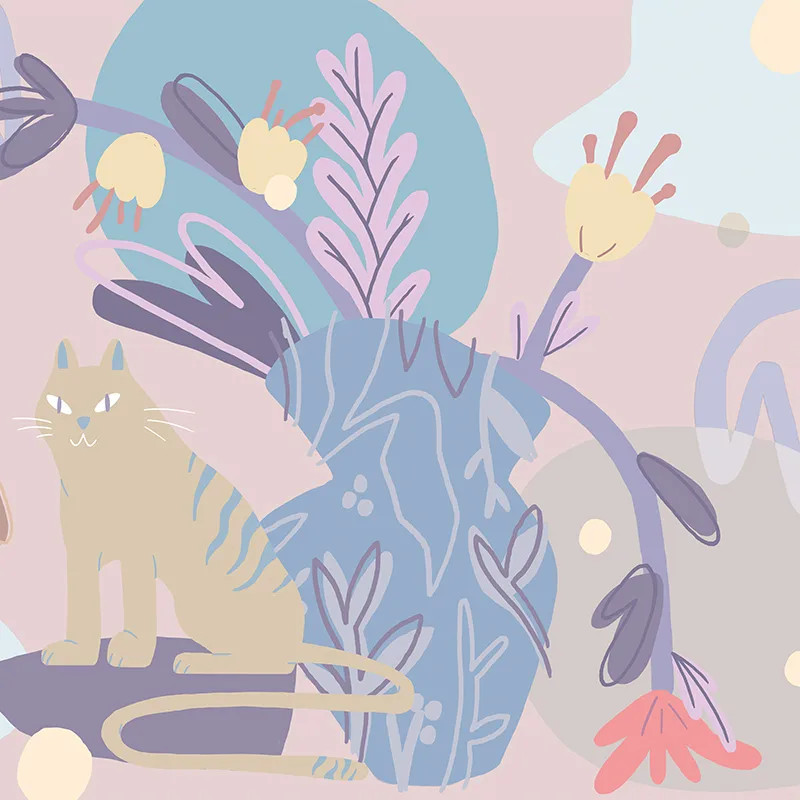 Дизайн обоев Minous излучает радостную и спокойную энергию. Уютная безмятежность побуждает помечтать. Кошки — отличный символ нежности и игривости. Они умеют ставить себя на первое место без угрызений совести. Природа наградила их гибкостью и ловкостью. А любовь к долгому ленивому солнечному дню делает их идеальными спутниками летнего отдыха.