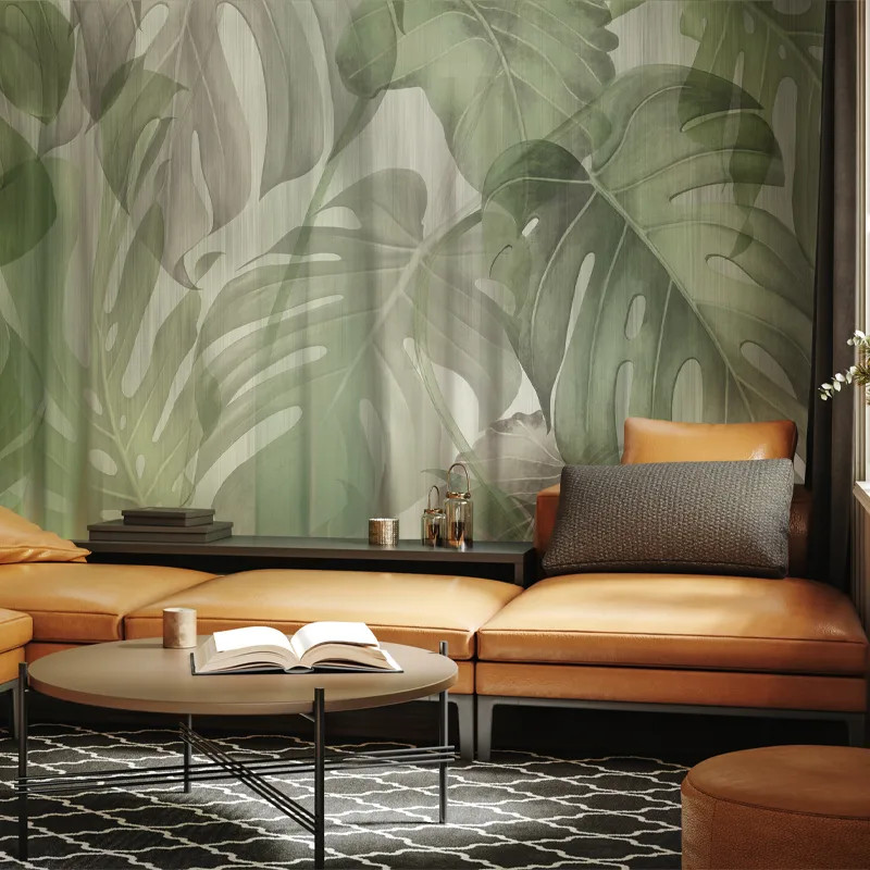 Как и все наши обои, модель Monstera Mirror изготовлена на основе Vlies. Это нетканый материал, очень прочный и долговечный. Мы предлагаем три разных текстуры, чтобы вы могли выбрать ощущение, которое принесёте в дом. Текстура Smooth — матовая, гладкая и приятная на ощупь. Canvas создаёт эффект большого полотна. И, наконец, Linen — благородный материал, который придаёт стенам текстуру, напоминающую плотный лен.