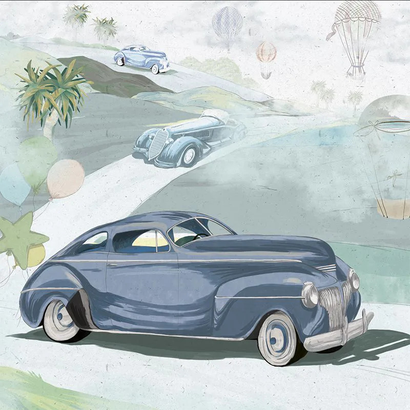 Модель обоев Retro cars (blue) входит в коллекцию Fantasy. Она рисует мир невинности, где всё, о чём вы мечтаете, становится возможным. Нужно лишь открыться волшебной стороне дизайна. Палитра насыщенная и разнообразная. Тщательно подобранные оттенки создают фантастическую атмосферу. Изделие выполнено с большим вниманием к деталям и наполняет пространство ощущением уюта. Расслабление и вдохновение. Динамика и положительная энергия. Самые красивые истории начнутся прямо у вас дома. Стены станут рассказчиками и магическими хранителями, которые будут оберегать вашего ребёнка.