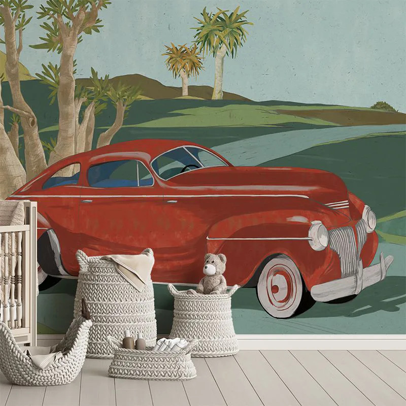 Как и все наши обои, модель Retro cars (red) произведена на основе Vlies. Это нетканый материал, очень прочный и долговечный. Мы предлагаем три разные текстуры, чтобы вы могли выбрать ощущение, которое привнесёте в дом. Текстура Smooth — матовая, ровная и приятная на ощупь. Canvas имеет структуру, создающую иллюзию увеличенного полотна. Наконец, Linen — благородный материал, придающий стенам текстуру, напоминающую плотный лён.