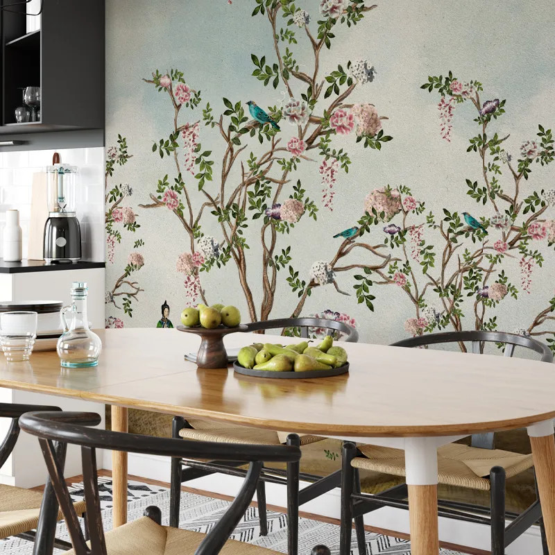 Обои Scenes from life (blue sky) наполнены множеством смыслов и превращают ваш дом в средневековый мир, где восточно-азиатские традиции гармонично переплетаются с природой. Элементы, вдохновлённые японскими пасторальными сценами, позволяют перенестись в древние края. Вишнёвые цветы, выполненные акварелью вручную, символизируют мимолётность жизни. Птицы связывают её с энергией прошлого, как вечные духи. Тёплый жёлтый цвет и фактура холщёвой бумаги создают ощущение спокойствия и живости. Они придают вашему дому утончённый и элегантный вид. Что вызывает у вас эта картина? Какие чувства вы испытываете, сталкиваясь с традициями, уцелевшими до наших дней? Доверьтесь эстетическому мастерству и обращайте внимание на необычные детали при оформлении интерьера.