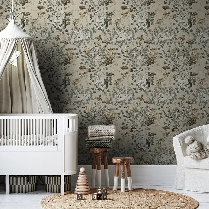 Дизайн обоев Spinney наполняет любое пространство кусочками сказки. Как волшебная страна, он дарит магию и знакомит с миром животных. Всё превращается в нежную, расслабляющую мелодию, которая приносит спокойствие и ощущение благополучия. Спокойно и мягко ваш малыш будет проводить дни в компании наших персонажей. Нарисованные вручную и с тщательной проработкой деталей, они оживают на стенах вашего дома. Всё, что нужно — смотреть на них глазами ребёнка.