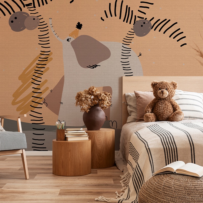 Как и все наши обои, модель The Clown Elephant произведена на основе Vlies. Это нетканый материал, очень прочный и долговечный. Мы предлагаем три разные текстуры, чтобы ты мог выбрать ощущение, которое принесёшь домой. Обои Smooth — матовые, гладкие и приятные на ощупь. Canvas обладает фактурой, создающей иллюзию большого холста. И, наконец, Linen — благородный материал, который покрывает стены фактурой, напоминающей плотный лен.