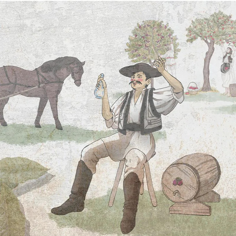 Дизайн каждого обоев ловит по одной истине прошлого, настоящего и будущего. Это погружение внутрь, чтобы задуматься о собственной идентичности. Что делает тебя румыном? Какие истории о юношах в хороводах с гордыми девушками рождаются в душе? Какие воспоминания всплывают, когда ты смотришь на сцены, запечатлённые в изображениях? Запах бодрой зимы у печи, и на фоне — колядующие. Может быть, день на поляне, когда ноги касаются свежих стеблей травы, ласкаемых солнцем. Летом — на веранде у бабушки, скручивая шерсть на прялке и напевая старые народные дойны. Возможно, вкус спелого винограда, лопающегося между губ. Или насыщённый осенний виноградный сок, наливаемый в кубки за щедрым праздником.