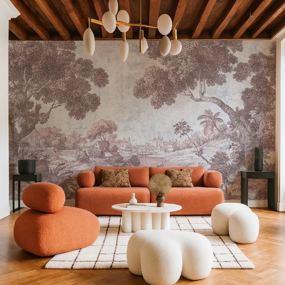 Verdant Fortress Rose — роскошные обои, ручной мурал, художественная облицовка стен и вневременной дизайн — подпись House of VLAdiLA для интерьеров, которые ищут и роскошь, и душу.