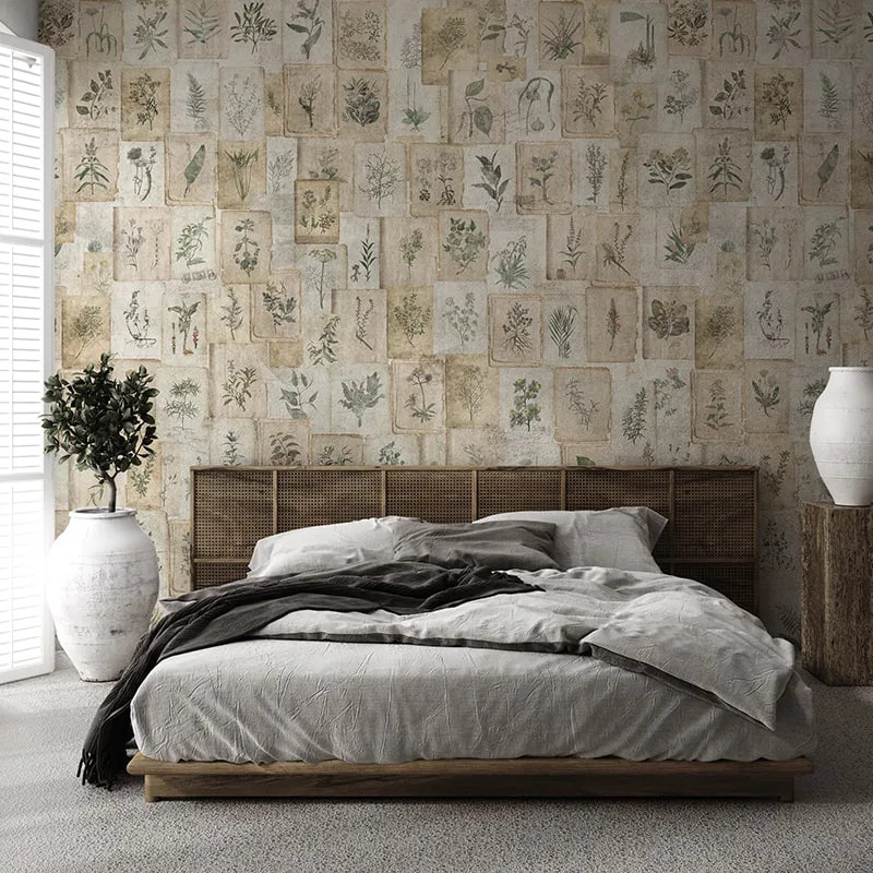 Как и все наши обои, модель Vintage Herbarium сделана на основе Vlies. Это нетканый материал, очень прочный и долговечный. Мы предлагаем три разные текстуры, чтобы вы могли выбрать ощущение, которое принесёте в дом. Текстура Smooth — матовая, гладкая и приятная на ощупь. Canvas имеет структуру, создающую эффект большого полотна. Наконец, Linen — благородный материал, который придаёт стенам текстуру, напоминающую богатый лен.