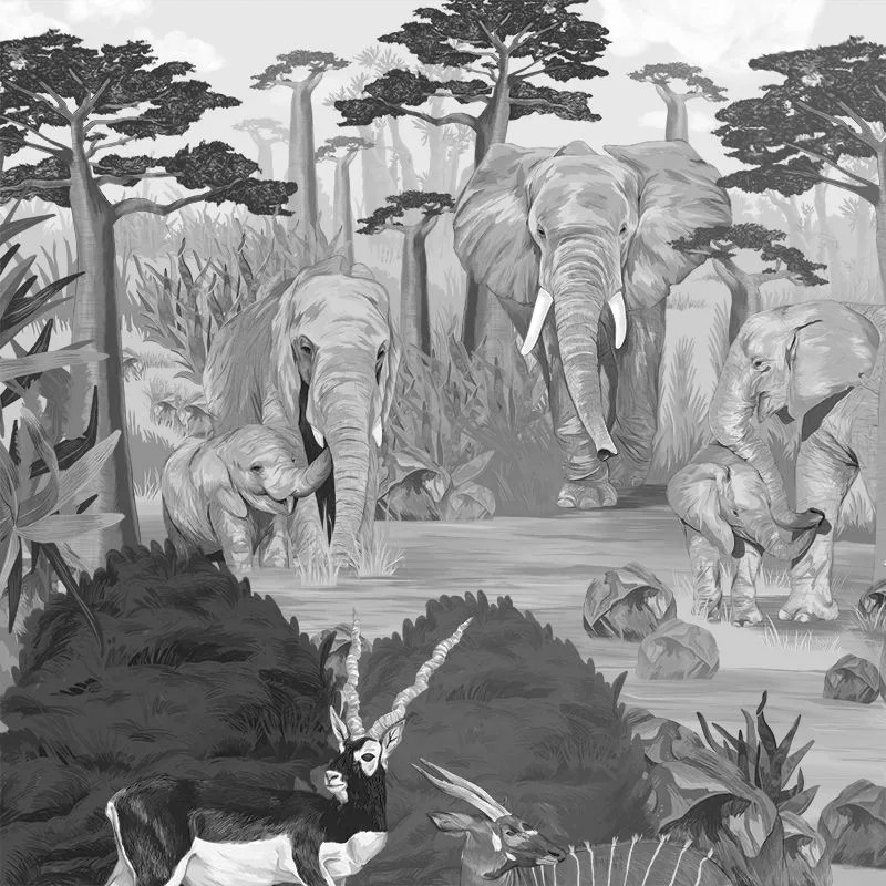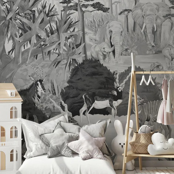 Дизайн обоев Wonderful Wilds Gray входит в коллекцию Enchanted Forest. Яркий, с волшебными персонажами, он создаёт хорошее настроение в любом помещении. Поэтому он идеален для детских садов, детских комнат и школ.