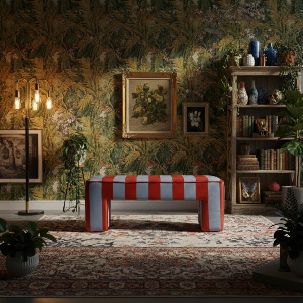 Модель скамьи Скамья Galan небольшая, но по части изысканности ей нет равных. Обитая роскошным бархатом в красно‑синие полосы, эта элегантная скамья станет тем самым ярким акцентом, который вы хотите в любом помещении.Будь то в просторном интерьере или как цветовая точка в небольшой комнате, модель скамьи Скамья Galan легко меняет атмосферу.Идеальна для гостиных, кабинетов и прихожих. Отлично дополняет современный и классический декор и быстро становится центральным элементом интерьера.