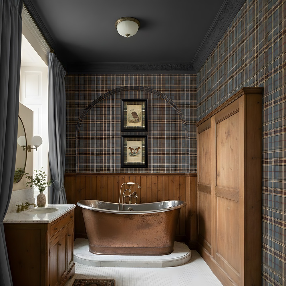 Datorită mixului său de culori naturale și accente metalice, acest tapet tartan este extrem de versatil în amenajările cu caracter: