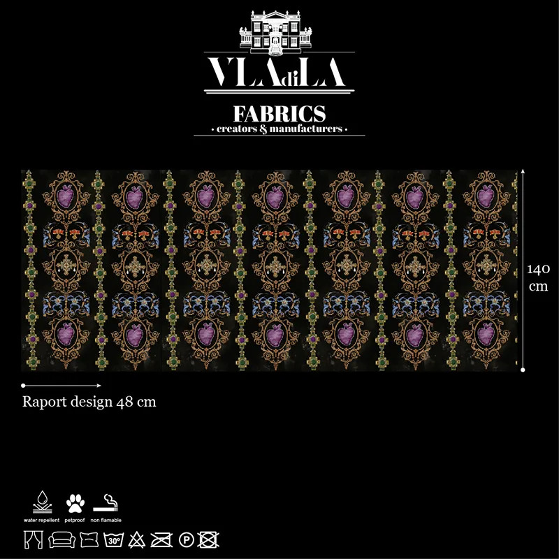 Мы твёрдо верим, что любому пространству нужна визуальная текстура. Для нас это — тяжёлые складки бархата. Ткань Queen’s Treasure (Onix) точно передаёт это. Её богатая поверхность несёт в себе отголоски вечной утончённости. Достоинство аристократической элегантности: роскошь, которую вы ощущаете, не заявляя о ней.